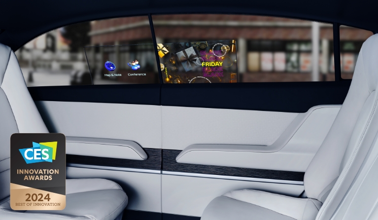 Embrace the future of automotive technology with our rollable Micro LED displays. Upgrade your driving experience with high-quality entertainment and innovative solutions. Introducing the world's first rollable rear-seat entertainment display, the Rollable RSE. It offers rear-seat passengers a comfortable ride with clear, high-definition image quality, while maximizing design flexibility.