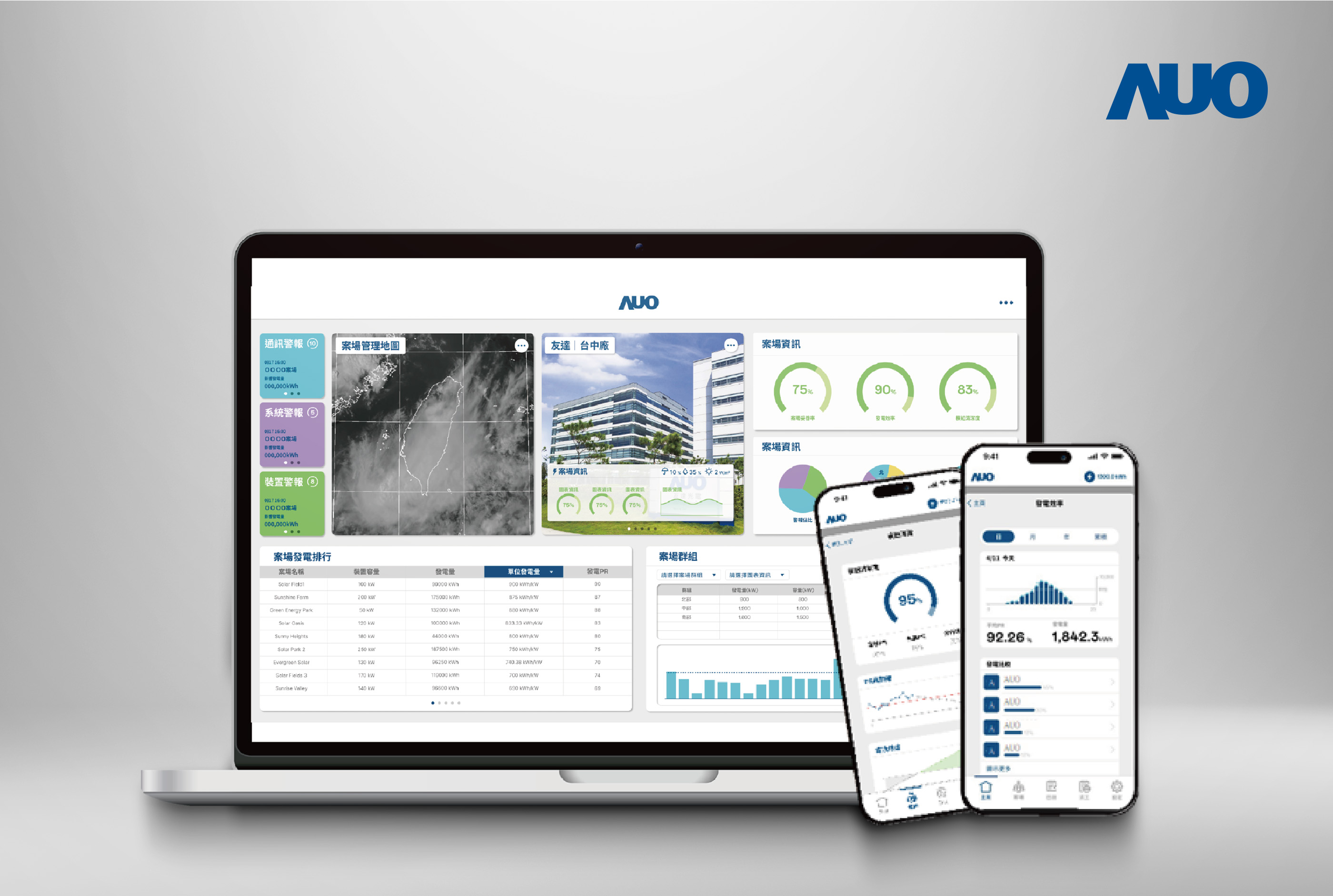 In human-machine collaboration and real-time AI surveillance technologies, the AUO SunVeillance PV Smart Cloud System allows defective modules to be located and repaired. Other advantages include lower workforce costs, improved inspection quality, and higher power output. This energy solutions integrates 4 systems for efficient renewable energy management: SunVeillance, DREAMS, Green Energy Trading Platform, and PowerVeillance, providing a comprehensive and efficient renewable energy management platform that covers the entire process of generation, consumption, and trading of electricity.