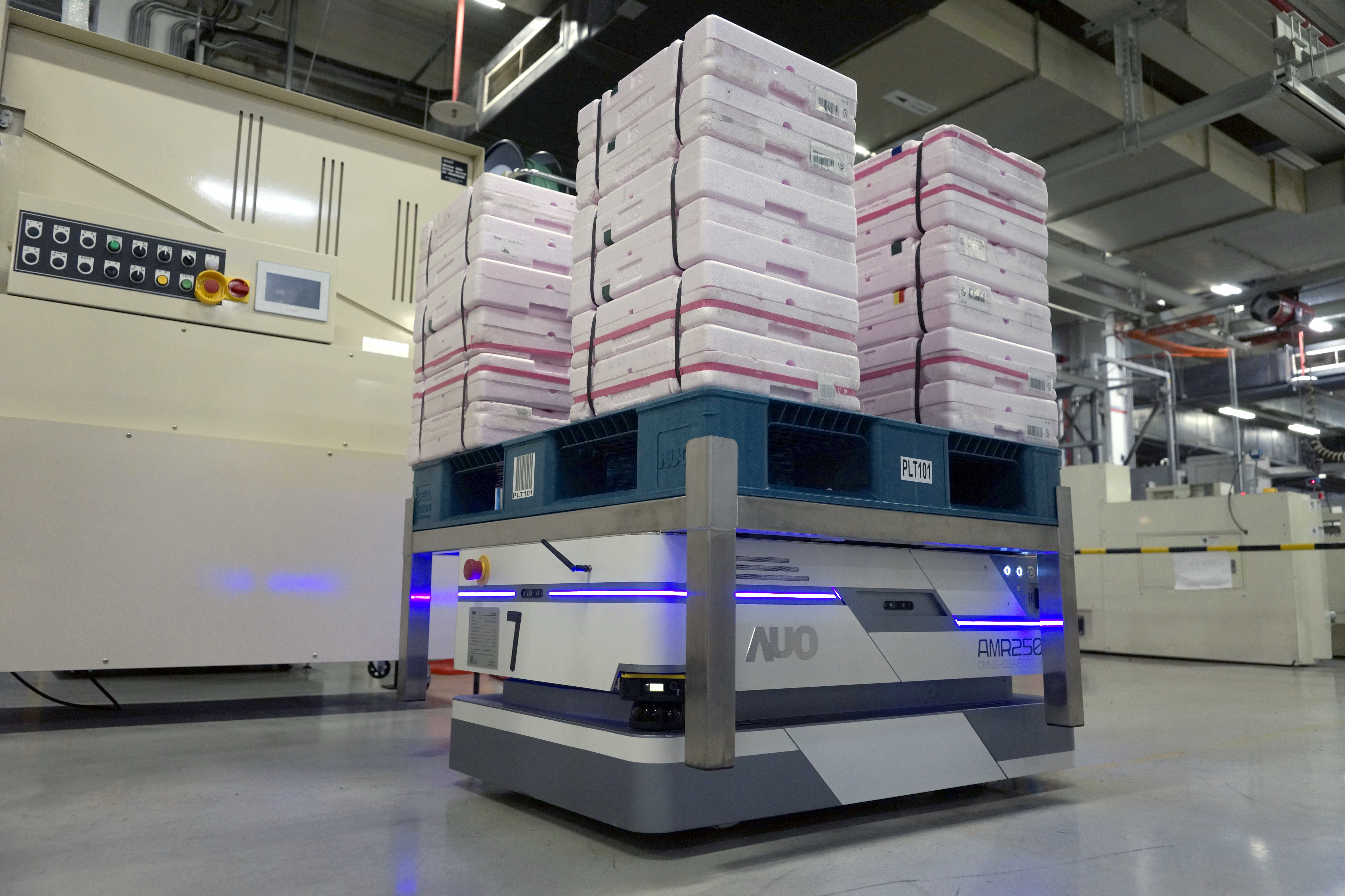 LEYU官網運用數字孿生系統,結合AMR無人搬運車進行派送,達成低庫存高效率的智能化倉儲物流管理。