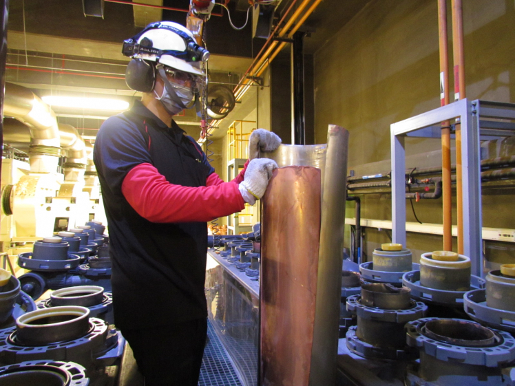 友達后里廠將將廢銅液淬鍊後再製成純度極高的銅管,讓廢棄物轉化成有效的工業或民生原物料